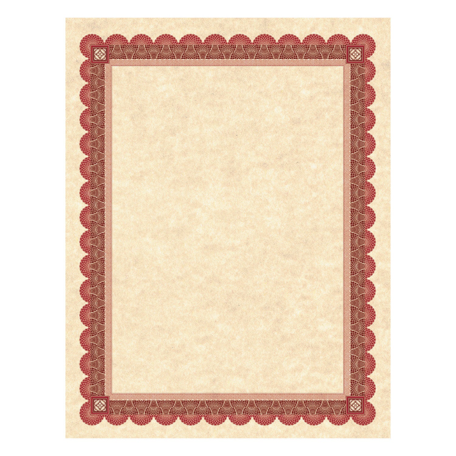 Southworth 8.5 x 11 in. Copper Border Parchment Certificate - Copper - Certificates with preprinted borders offer handsome, professional-looking printed borders to enhance fine copper parchment paper with red and brown ink. Includes CD with more than 50 certificate and award templates. Simply choose a template design, add...