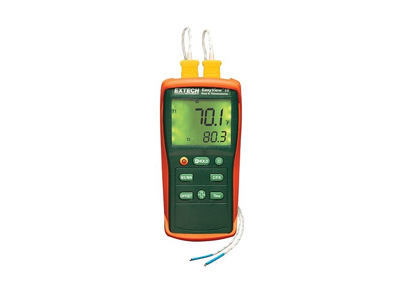 Extech Instruments EasyView Thermometer - Manual push-button data logging or automatic with programmable sample rate of 3 to 355 seconds per reading. Transfer recorded data to a PC for analysis via RS-232 interface Easy view type K Dual Input Thermometer with Dual Readings or with PC...