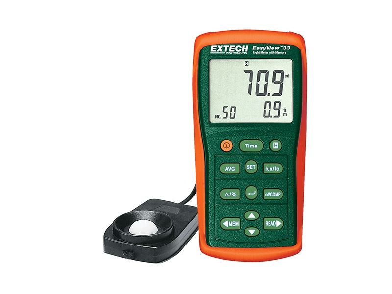 Extech Instruments Easy View Light Meter with Memory - This compact and ruggedly designed meter has a wide measurement range to 99,990 Foot Candles in 5 ranges and 999,990 Lux in 5 ranges with 0.001Fc/0.01Lux resolution. Features include: Store and Recall up to 50 measurements with relative or real time...