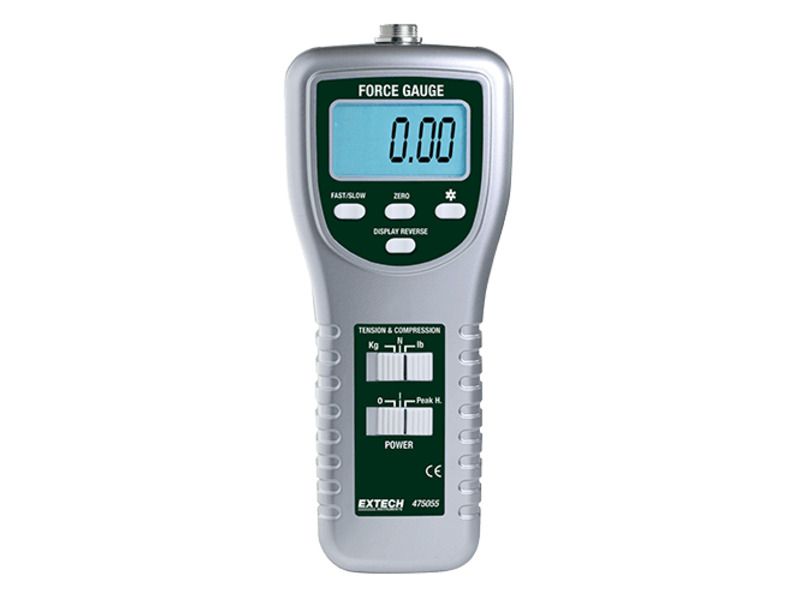 Extech Instruments High Capacity Force Gauge with PC Interface and NIST - 475055-NIST is a High Capacity Force Gauge with PC Interface. Measuring ranges from 0.05 kg to 100 kg, 0.05 lbs. to 220 lbs., 0.2 to 980 Newton. Basic accuracy of 0.5%. Tension or Compression, Peak hold and Zero functions. Positive/Reverse display for...