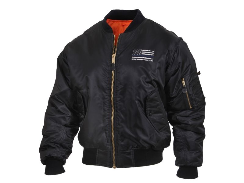 Rothco Thin Blue Line Flag MA-1 Flight Jacket screenshot. Men's Jackets & Coats directory of Men's Clothing. Click to enlarge product image  Rothco Thin Blue Line Flag MA-1 Flight Jacket - Rothco Thin Blue Line Flag MA-1 Flight Jacket