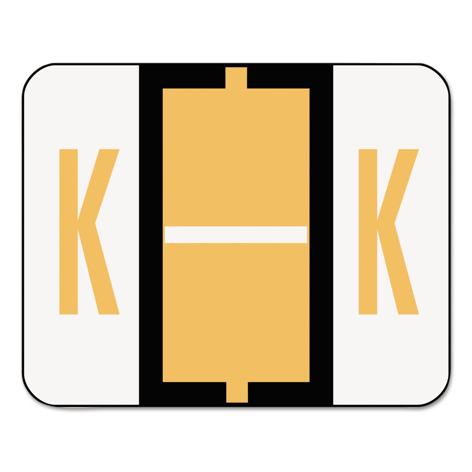 Smead 67081 1" x 1 1/4" Color-Coded Light Orange K Bar-Style End Tab Label - 500/Roll - With this Smead 67081 1" x 1 1/4" color-coded light orange K bar-style end tab label, you can keep your files organized with ease! Featuring the letter K, this label is great for distinguishing files in an alphabetically organized filing system....