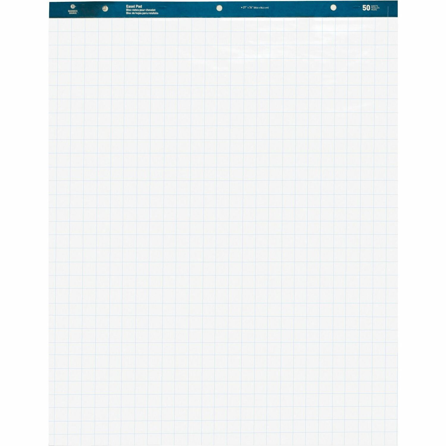 Business Source Easel Pad 27"x34" 50 Sheets 1" Quad 4 Count BSN38589 - Business Source Easel Pad, 27"x34", 50 Sheets, 1" Quad, 4 Count BSN38589 Business Source Easel pad contains 50 sheets of 1'' quad-ruled, perforated, white 15 lb. paper. Pad binding has punched three holes (8-3/4'' c-c). Product Type: Easel Pad Media...
