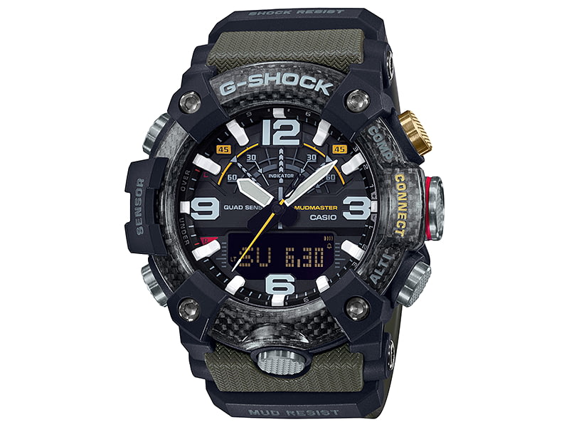 Casio GGB100-1A3 Master of G Mudmaster Men's Watch Green 55mm Carbon - From Casio G-Shock, the innovators of tough timekeeping, comes the GGB100 Master of G Mudmaster watch series that has been designed to endure the toughest environments. This watch features a carbon core guard structure case, in black with grey accents,...
