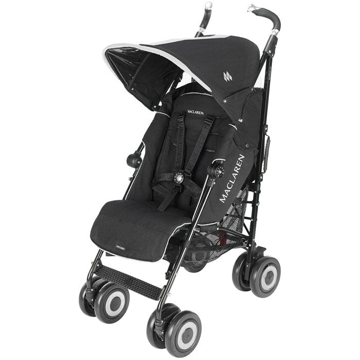 Maclaren Techno XT 2010 Stroller - Black on Black - A smart, sophisticated look for the discerning parent. Easy, single-handedfold with convenient carry handle weighing just 14.2 pounds. The Maclaren TechnoXT is suitable from birth. Equipped with soft cosseting seat, shoulder pads and4-position fully-recli