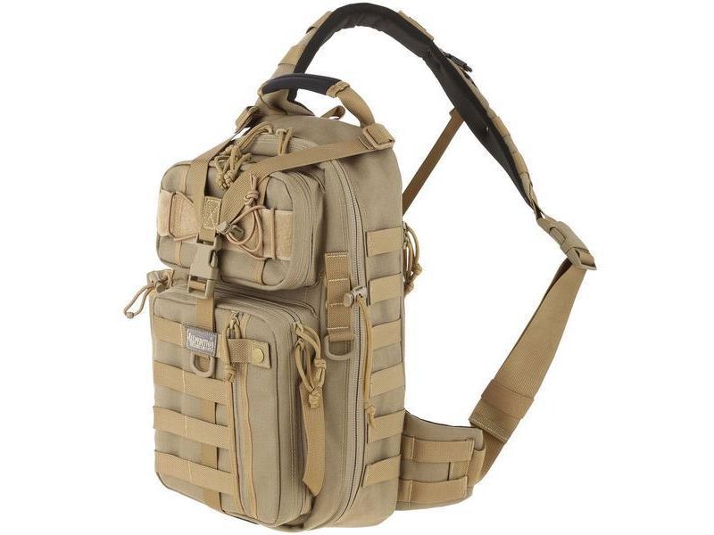 Maxpedition in Khaki. Single shoulder backpack designed to maximize utility when rotated towards front of body. Material: 1000-Denier Coated Nylon. Backpacks,Maxpedition,Shoulder/Crossbody Bags,Sling Bags,Slings & Shoulder Bags,Tactical Gear Bags,