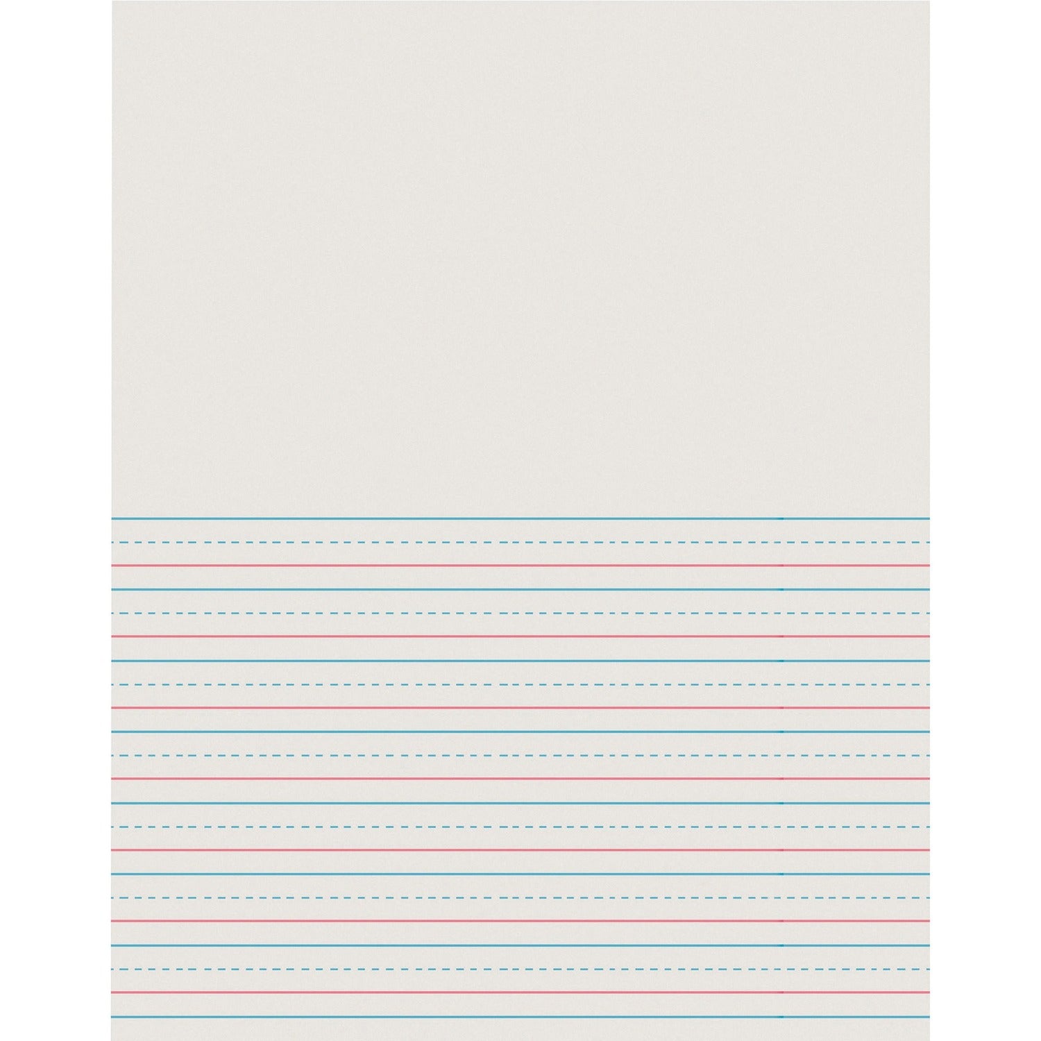 Conforms to D'Nealian ruling guidelines. White, 30 lb. newsprint. 11 x 8 1/2in. sheet. 4 1/2in. story book heading. Contains 50% postconsumer recycled fibers. Pacon Ruled News, Grade 2, 1 - 2in. x 1 - 4in. x 1 - 4in., SW is one of many Ruled & Plain...