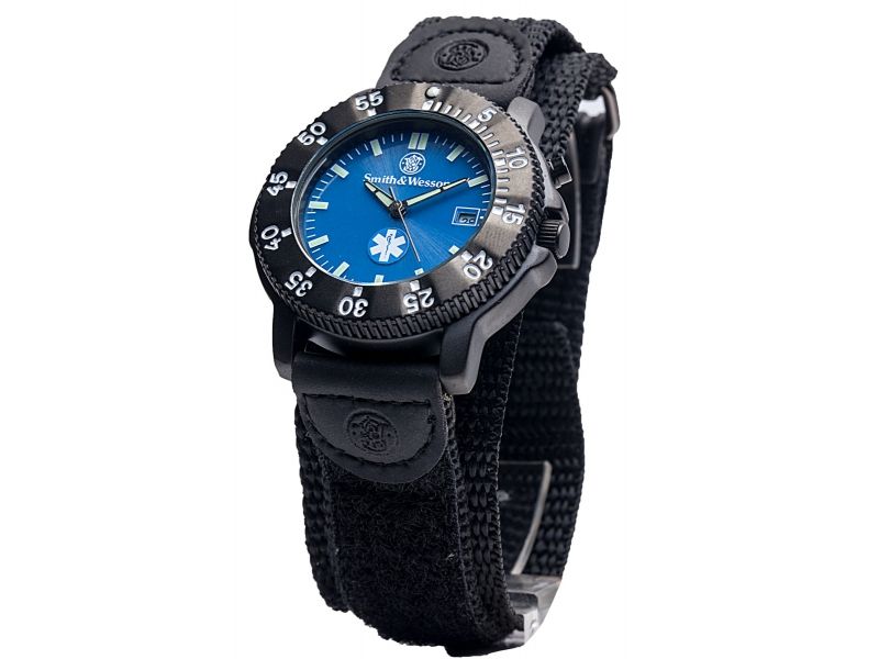 Smith & Wesson EMT Watch with Back Glow & Nylon Strap - SWW-455-EMT screenshot. Watches directory of Jewelry. Click to enlarge product image  Smith & Wesson EMT Watch with Back Glow & Nylon Strap - SWW-455-EMT - Quartz - Blue Dial