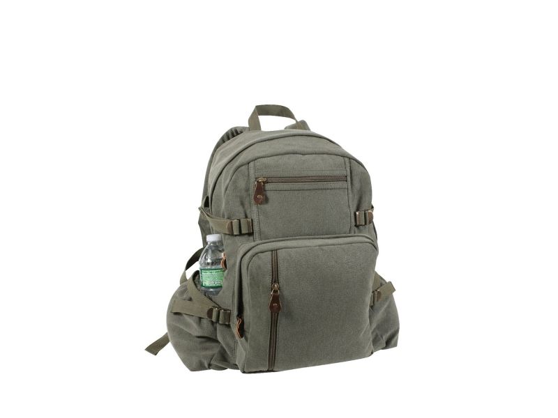 Rothco Large Vintage Canvas Backpack Olive - Rothco School & Day Hiking Backpacks screenshot. Backpacks directory of Handbags & Luggage. Click to enlarge product image  Rothco Large Vintage Canvas Backpack Olive - Rothco School & Day Hiking Backpacks - Large Vintage Canvas Backpack Olive.