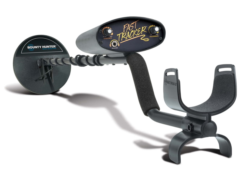 Bounty Hunter Fast Tracker Metal Detector - Headphone jack - Detects coin-size objects up to 7 in deep - larger objects up to 2 ft - 7.25 in interchangeable, waterproof search coil