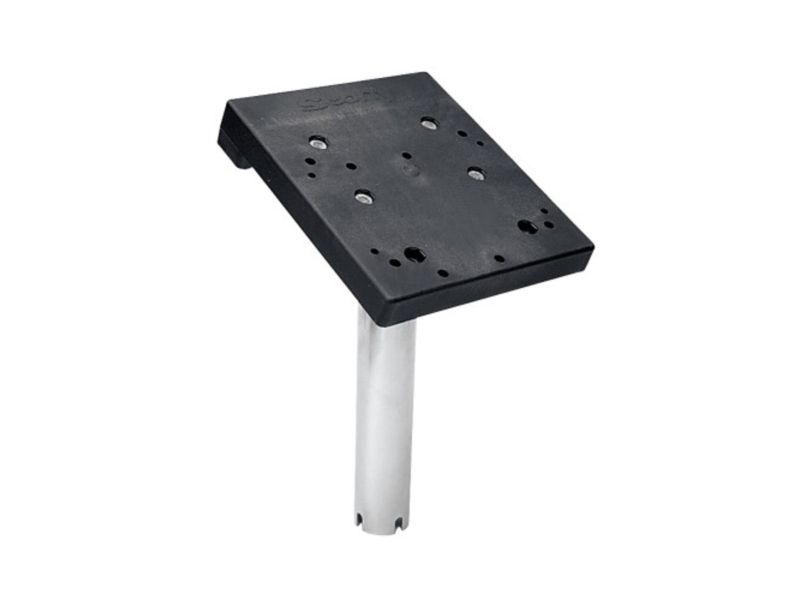 Scotty Gimbal Mount . Fits into boat's flush mount rod holder. Made of welded stainless steel and molded nylon. Fits all Scotty downriggers Fits 2in hole 6 1/8in X 7 1/8in X 12in