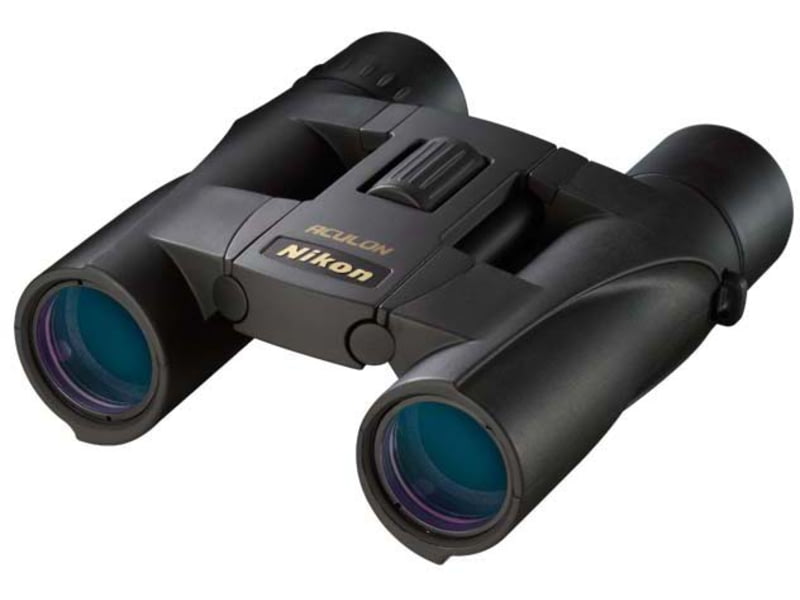 Nikon 10x25 Aculon A30 Binocular (Black) 10x25 Aculon A30 Binocular (Black), Roof Prism Design, Fully Multicoated Eco-Glass Optics, Dual-Hinge Configuration, Center Focus Wheel, Rubber Armored Housing