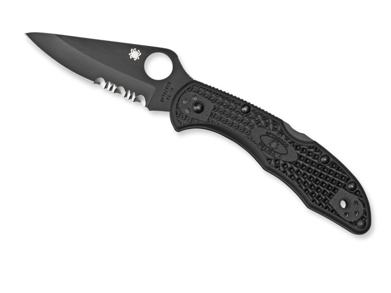 Spyderco Knife Delica 4 Lightweight FRN Combo Edge (400218) - Black - Available With Screw Construction Making Cleaning And Adjusting Easier - 7-1/8 Inches In Overall Length - 4-1/4 Inches In Closed Length - 0.5 Inch In Hole Diameter - 2-7/8 Inches In Blade Length
