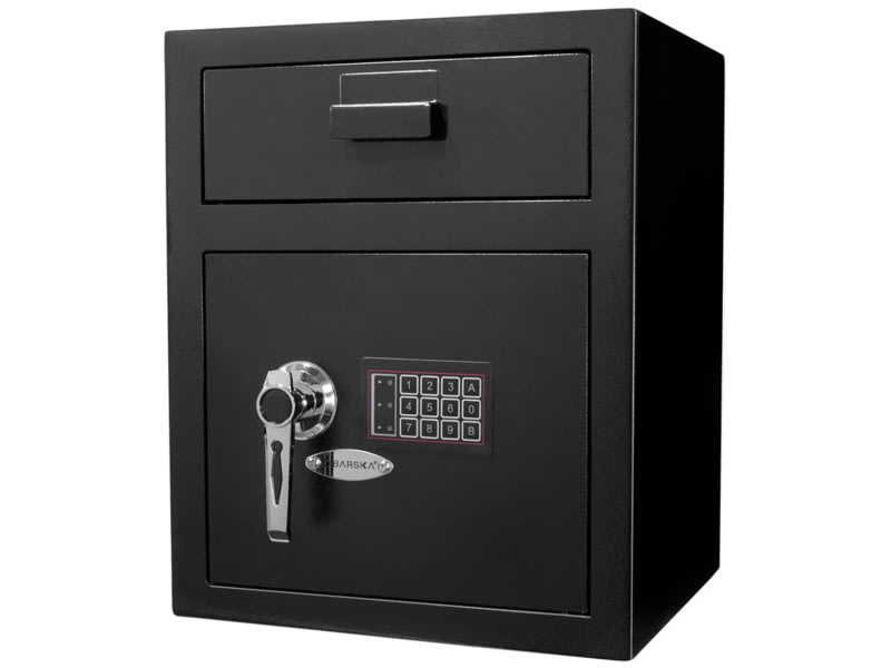 Barska Large Keypad Depository Safe - Black - AX11930 - 2 solid steel locking bolts - keypad with 2-digit PIN code retention - steel construction - antifishing baffles and jagged-edge teeth - predrilled holes on bottom and back