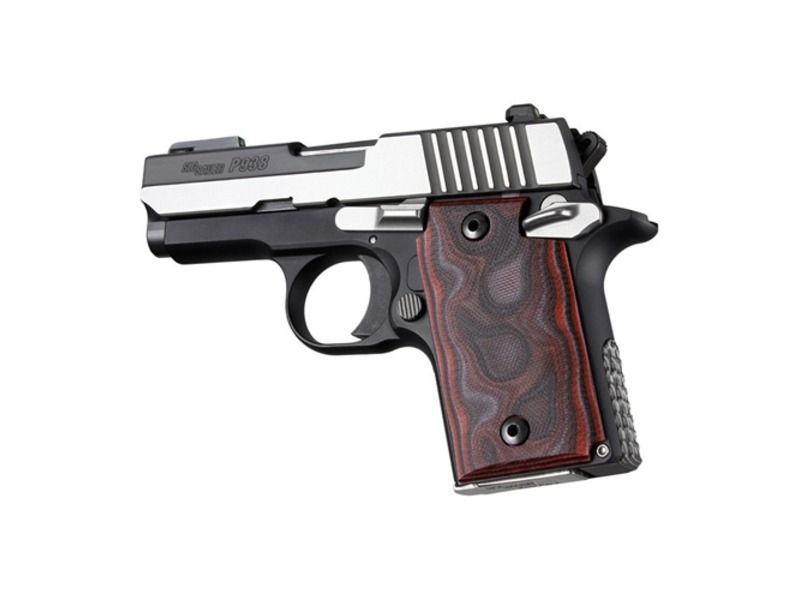 Hogue 98649 Sig P938 Ambidextrous Extreme Series Grip, Smooth G-Mascus G10, Red Lava - The Hogue name is practically synonymous with fine handgun grips. That is where it all started decades ago when a crafty LAPD officer named guy Hogue took it upon himself to make a better wood grip for his duty revolver. Little did guy know that his...