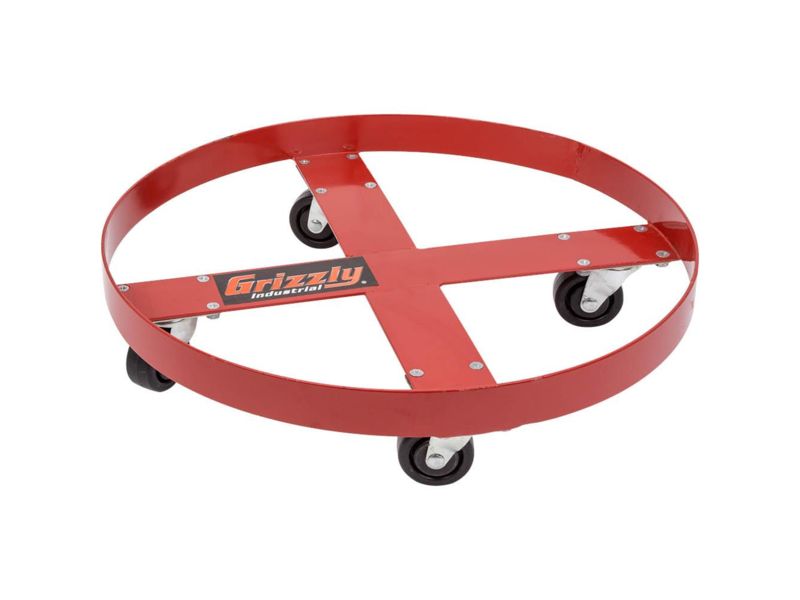 Grizzly H0761 Round Drum Dolly - This unit features a 2 1/4" lip and has a total height of 6 1/2" from the floor. 27 1/2" diameter with 4 swiveling casters. Capacity is 450 lbs. 24 lbs.