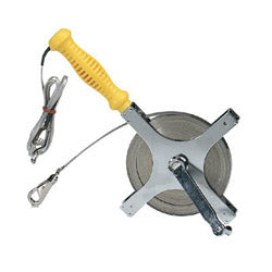 700-58813 Features: -Safety yellow handle with grounding wire. -Large hub flange protects tape tail for ''Pop Out''. -New stronger core/handle interface has more threads per inch. -Longer crank arm speeds retraction. Product Type: -Tapes. Generic...