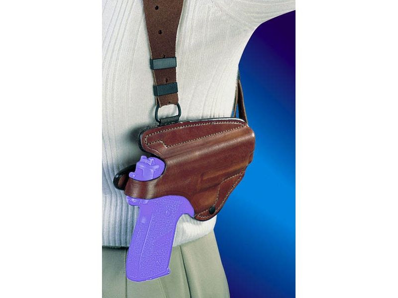 A comfortable shoulder holster that carries the pistol or revolver in a horizontal position. The holster is crafted from premium leather and is hand boned for a precise fit. The figure-8 suede harness provides a balanced carry without binding. Offside...
