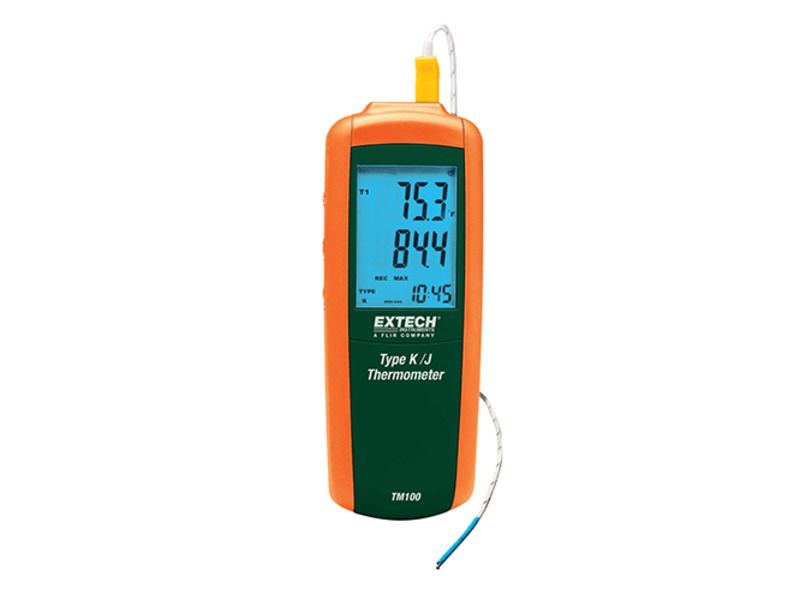Extech TM100-NIST Type J/K Single Input Thermometer with NIST - Compact-size Thermometer with Side-Button Controls For Convenient One-hand Operation. This product is NIST Certified which indicates that the product is traceable to standards provided by the National Institute of Standards and Technology (NIST).