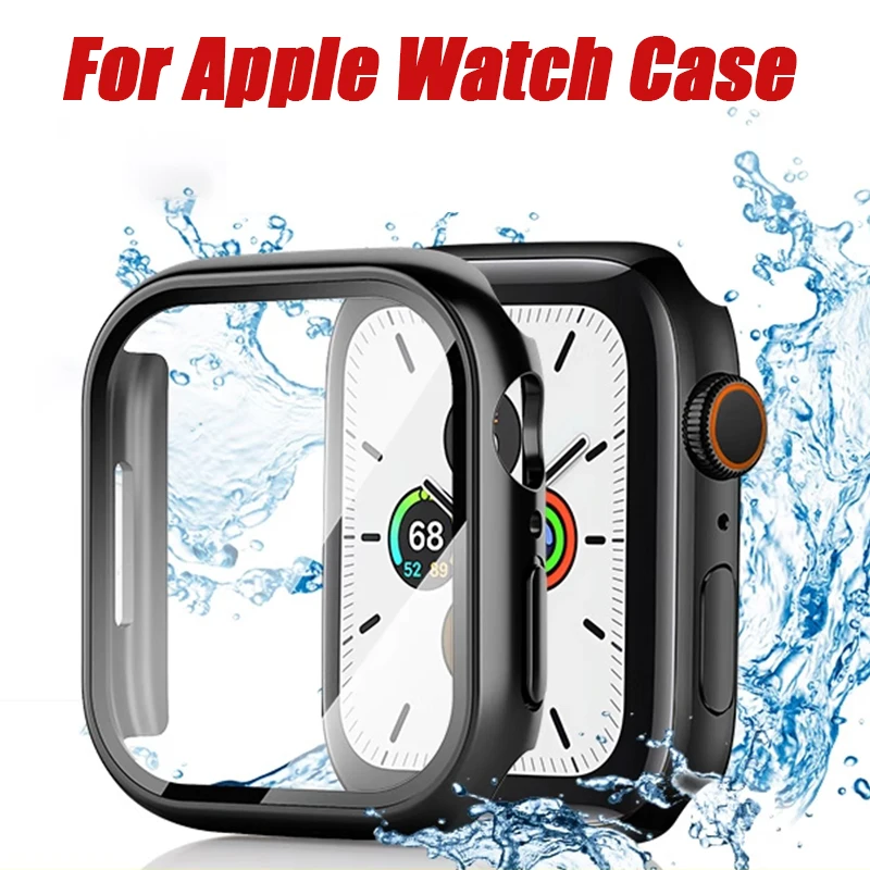 Tempered Glass+cover For Apple Watch Accessories 45mm 41mm 44mm 40mm 42mm Screen Protector Apple watch Case serie 9 4 5 6 SE 7 8