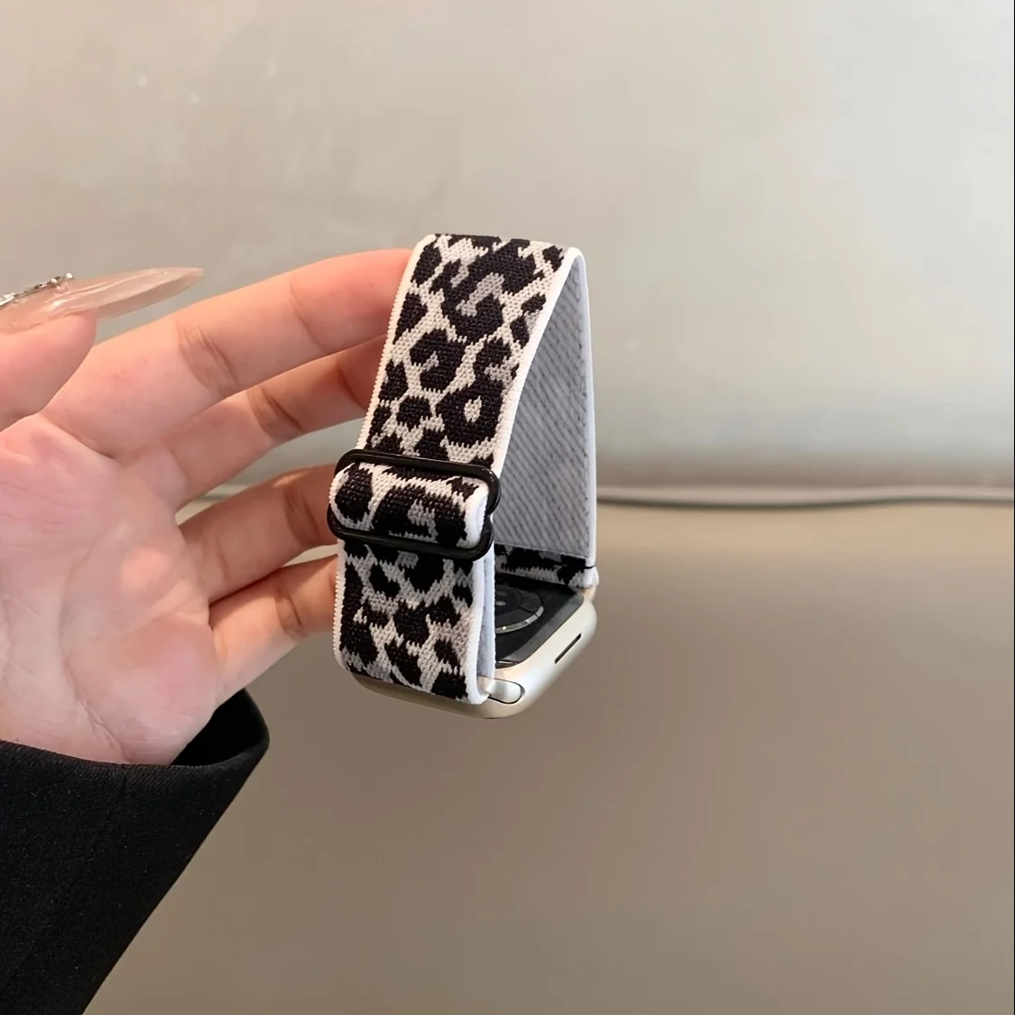 Leopard Stretchy Nylon Watch Band Compatible With iWatch Adjustable Leopard Strap For Apple Watch Series 10 9 8 7 6 5 4 3 SE 46