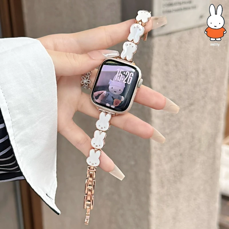 Kawaii Miffy Rabbit Watch Chain for S11 Apple Apple Watch Iwatch Small White Rabbit Metal S10/9 Watch Band
