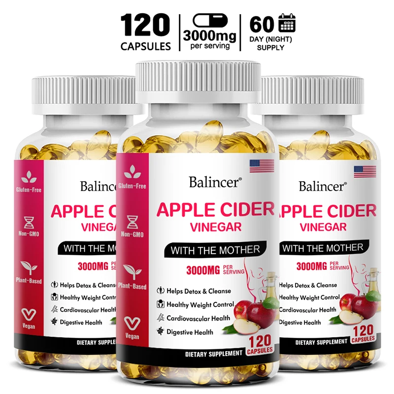 Balincer Apple Cider Vinegar Capsules 3000mg, Detox & Cleanse, Fat Burning, Healthy Weight Management Supplement Non-GMO