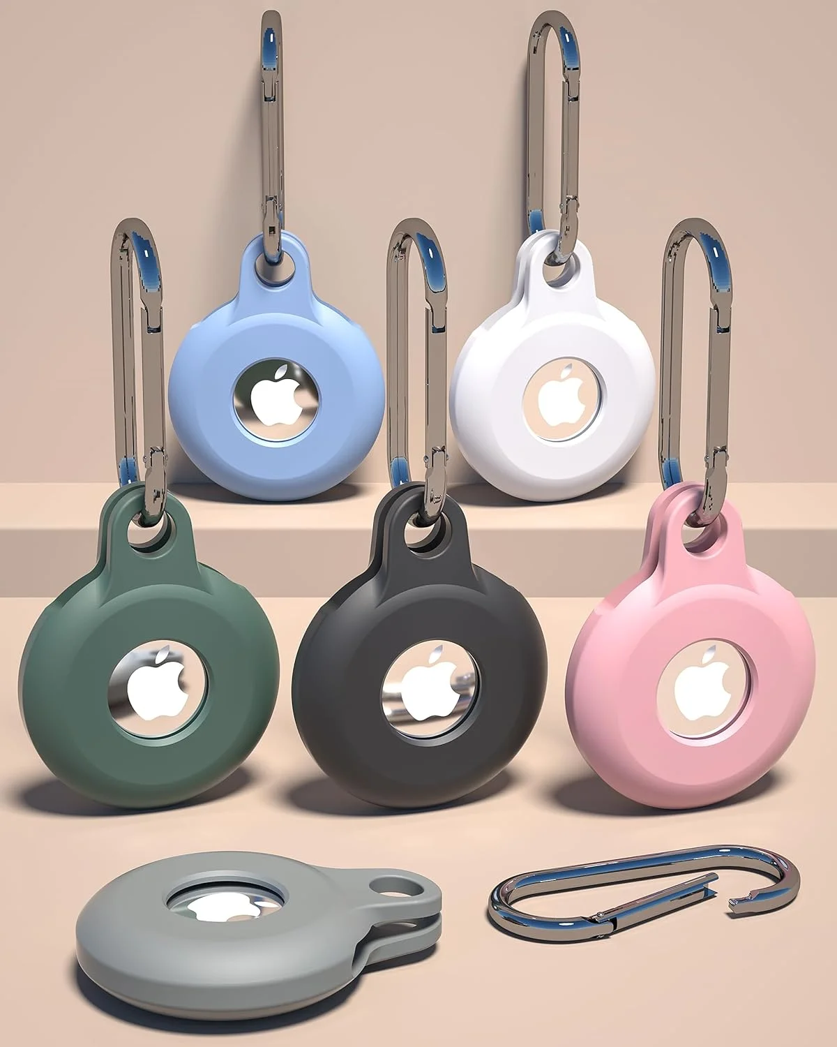 4 Pack Silicone Airtag Holder with Keychain, Air Tag Holder for Apple Airtag GPS Tracker, Soft Full-Body Shockproof Apple Tag
