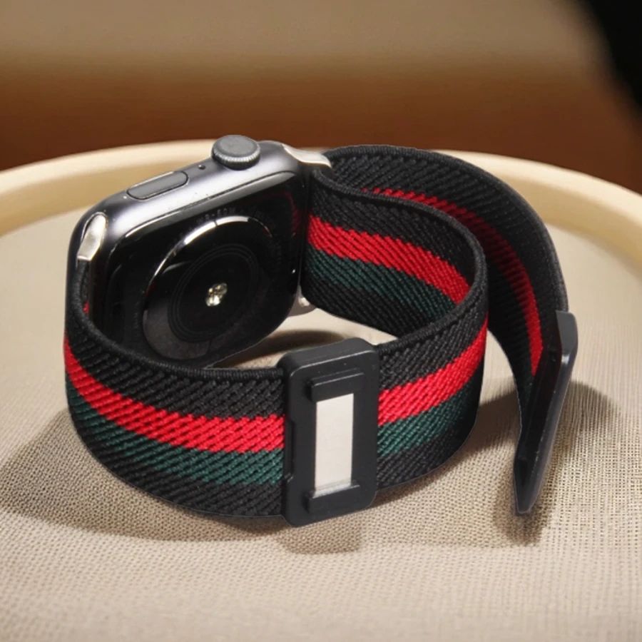 Elastic Loop For Apple Watch Band 45mm 44mm49mm42mm 41mm40mm38mm Magnetic Buckle Nylon Loop for Apple Watch Strap Series9 8 7 6