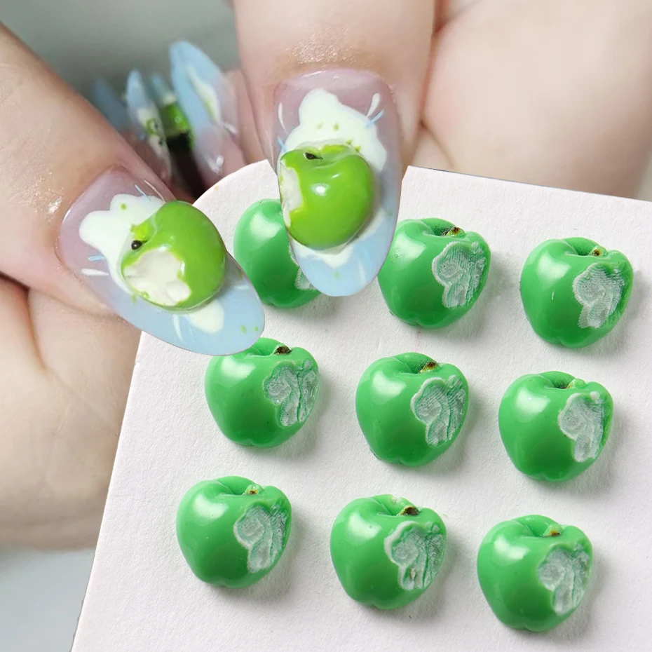 20/50/100 pcs 3D Realistic Apple Nail Charms Cute Green Refreshing Apple With a Bite Resin Fruit Nail Art Decoration Supplies