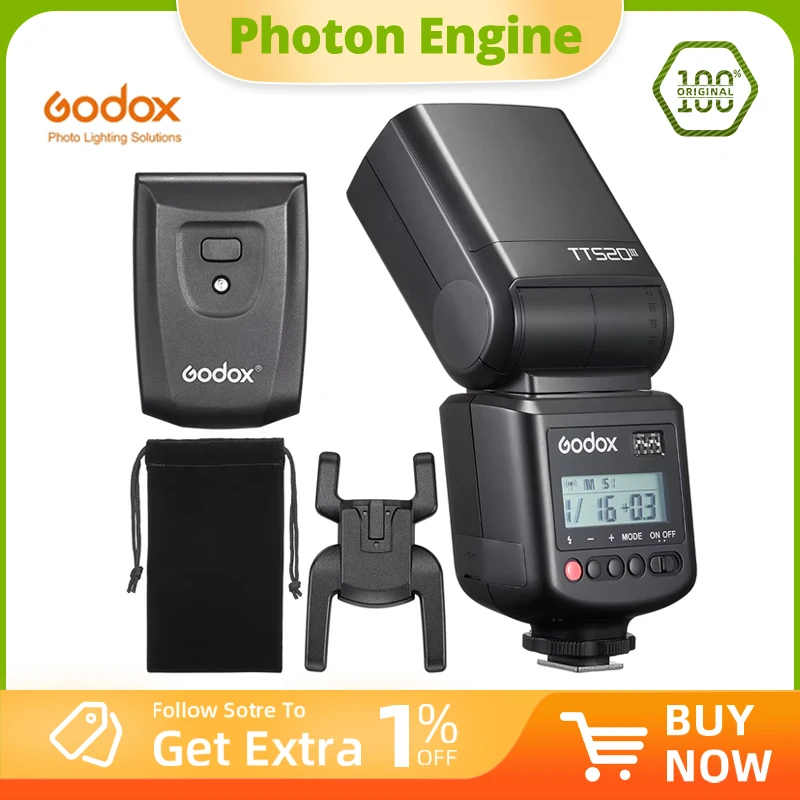 Godox TT520III THINKLITE Universal Camera Flash Speedlite Wireless for Canon Nikon Pentax Olympus DSLR Cameras for Canon EOS 90D