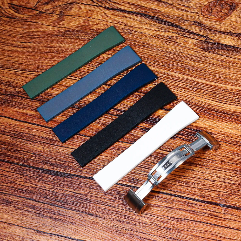 Fluororubber Watch Strap CTS FKM 18/19/20/21/22mm Quick Release Butterfly Buckle Man Watch Bands For Wrist Buddys Tudor Casio