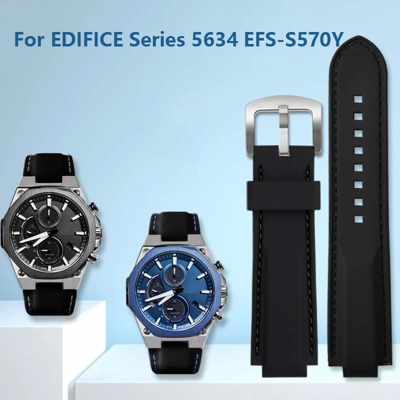 Silicon Watchband for Casio EDIFICE series 5634 EFS-S570YD/YDC/YDB modified convex watch strap black rubber bands
