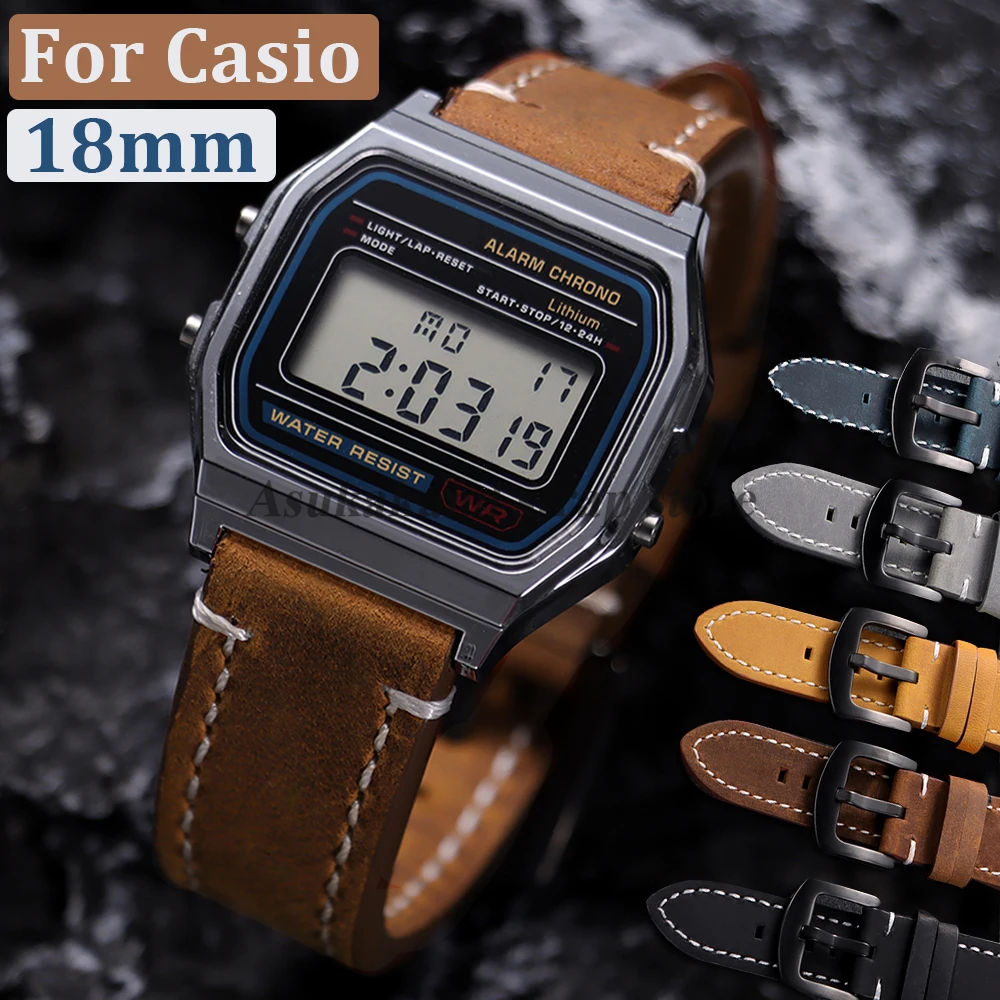 18mm Vintage Retro Leather Strap For Casio Mod Kit F91W W-800H SGW400 F84 F105/108 A158/168 AE1200/1300 Men's Quick Release Band
