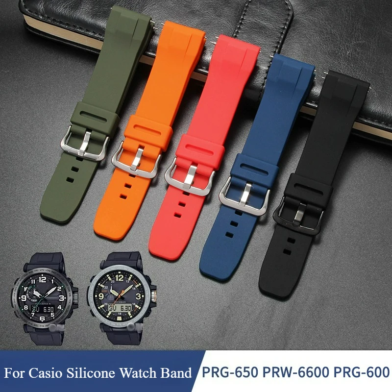 For Casio PRO TREK Series 5571 Adventure Ready Strap Needle Buckle Orange Black Blue 24mm Silicone Shockproof Construction