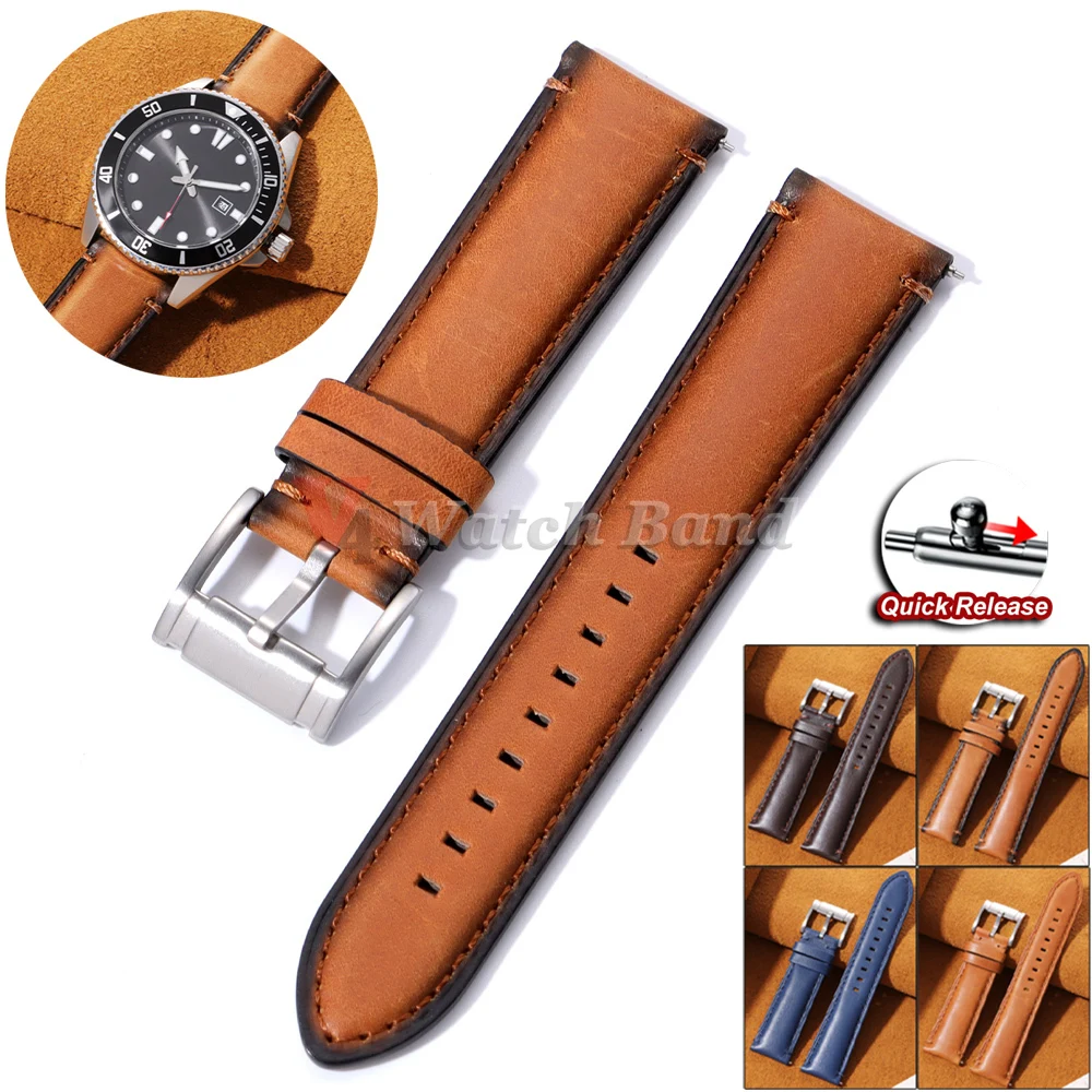 Cowhide Leather Watch Strap 22mm 24mm for Fossil Band for Casio 22mm Vintage Brown Watchband Quick Release Bracelet Accessories