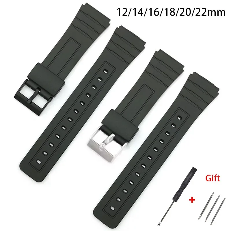 For Casio Silicone Watch Strap 12mm 14mm 16mm 18mm 20mm 22mm for SGW400 F91W F84 F105/108/A158/168 AE1200/1300 Sport Bracelet