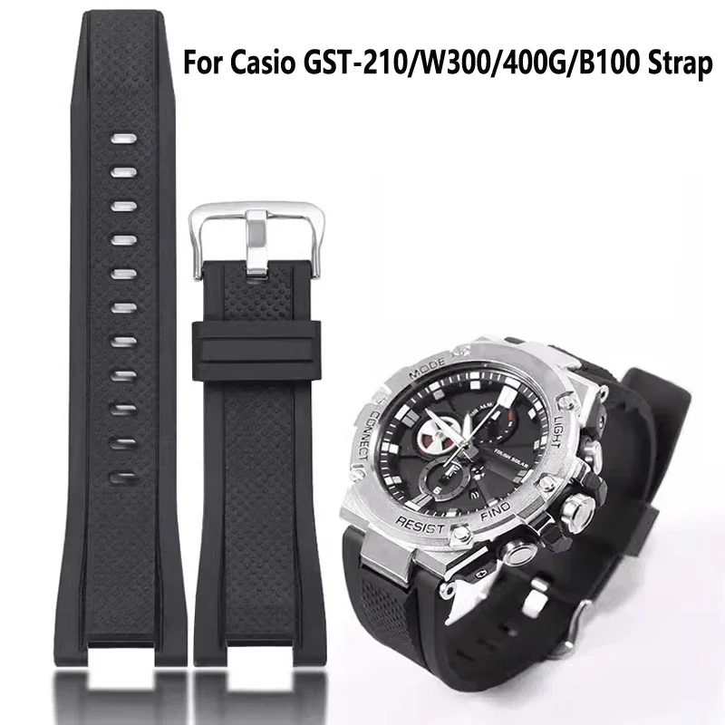 Silicone Watch Accessories Band for Casio G SHOCK GST Series GST-210/W300/400G/B100 Waterproof Rubber Bracelet strap 26mmX14mm