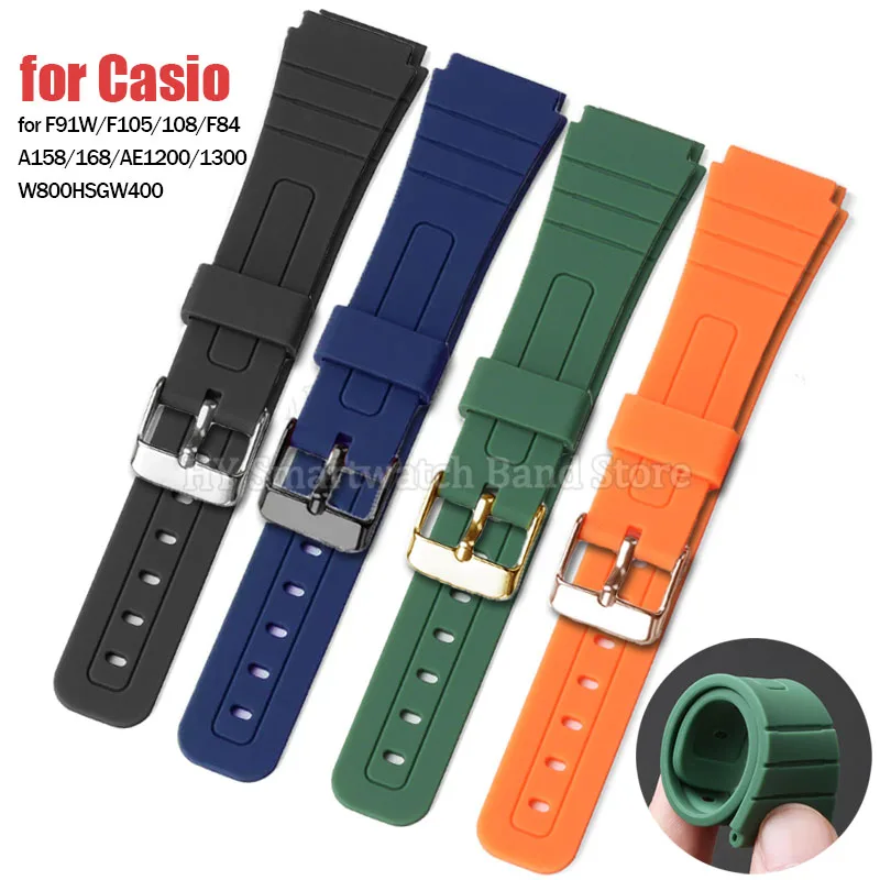 18mm Silicone Soft Watch Strap for Casio F91W F105/108 A158/168 W800H SGW400 AE1200/1300 F84 Men Waterproof Rubber Wrist Band