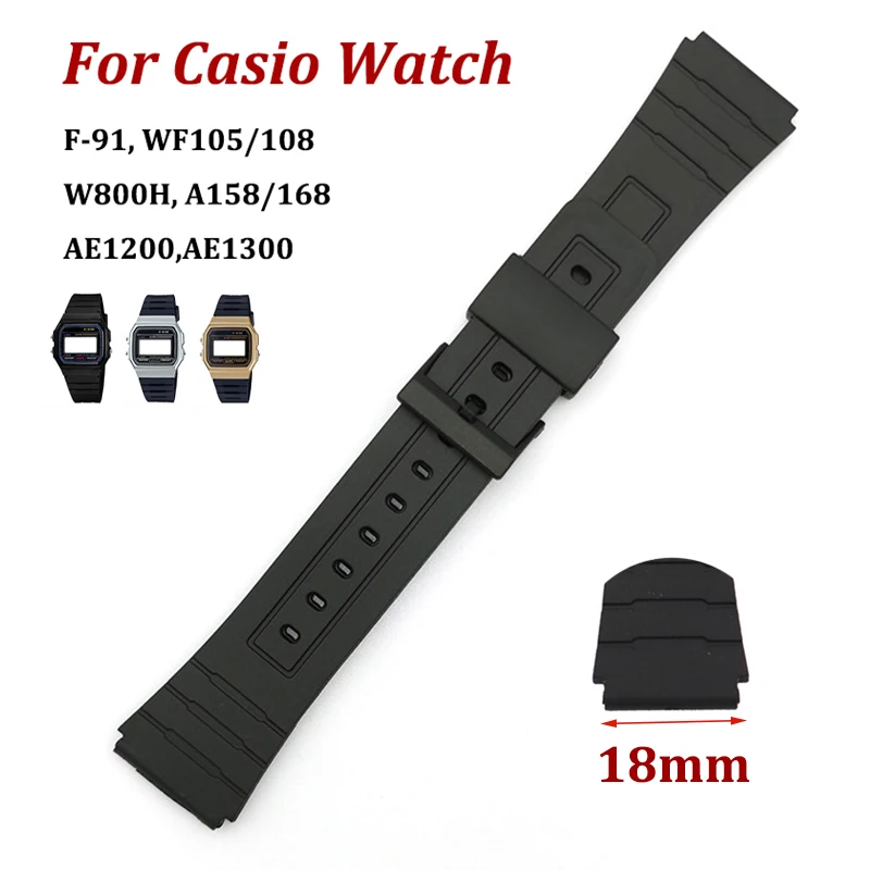 W800H Strap 18mm for Casio F-91W F105/108 A158/168 AE1200 AE1300 Universal Silicone Watch Band Women Men Sport Rubber Wristbelt