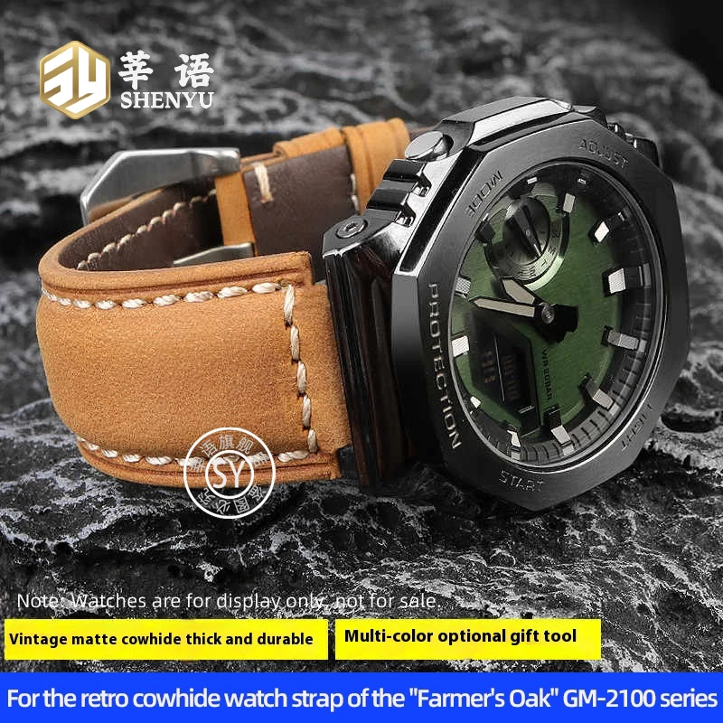 For Casio G-SHOCK "Farmer's Oak" GM-2100/GA2100/GM110, modified retro madras leather and frosted cowhide watch strap.