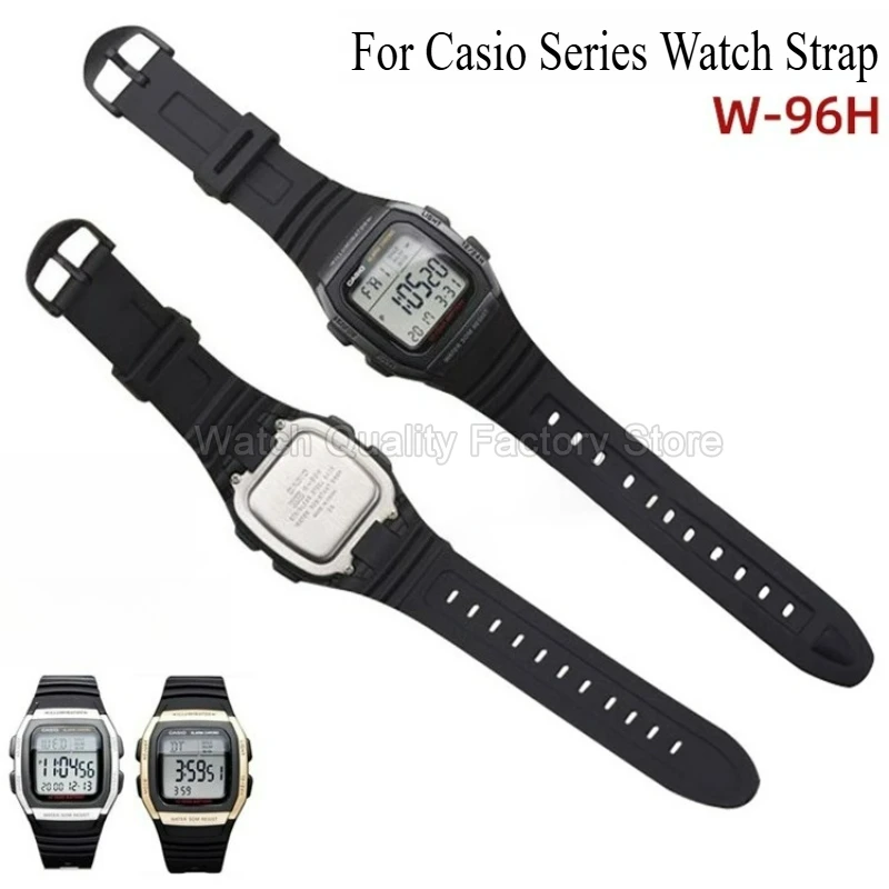 Precision Molded Resin Bracelet for Casio W-96H Black Special Buckle Concave Interface Skin-Friendly Daily Use Watch Strap