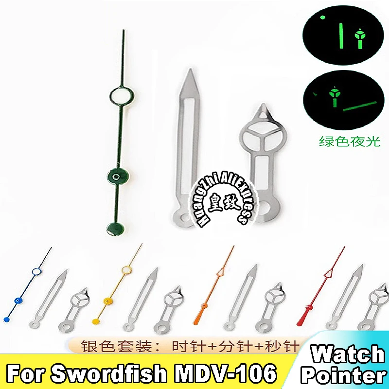 For Casio Swordfish MDV106 Watches Part MDV-106 Watch Hands Green Luminous Silver 2115 movement Trim Hour Minute Second Hands