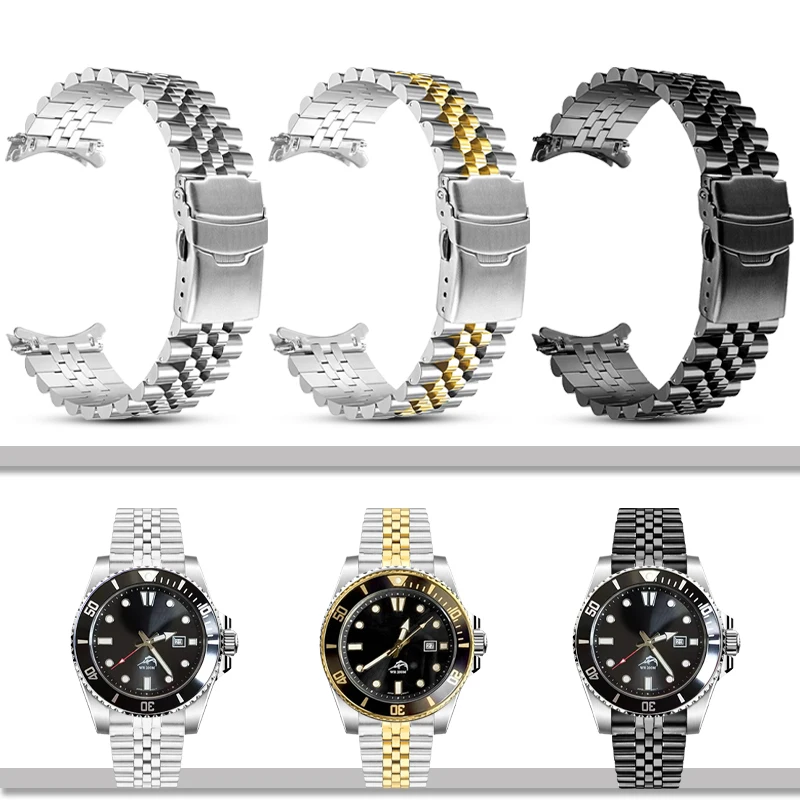 22mm Jubilee Diving Stainless Steel watch Strap For Casio Duro MDV106-1A Mdv107-1A Curved End Metal Wristband Replace Bracelet