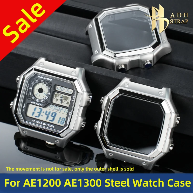 For Casio 3299 AE-1200WH Watch Case Modified AE1200 Stainless Steel Watch Case Metal Shell with Waterproof Ring Black Silver  Read more