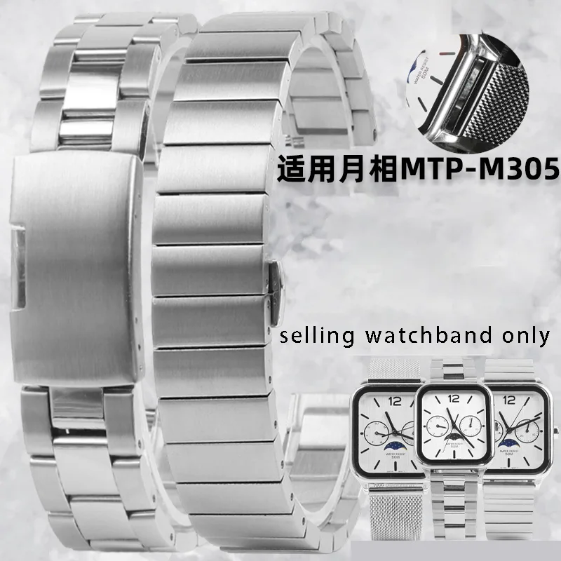 Solid steel watch strap wristband 20mm for Casio Moonphase Square MTP-M305 series men's and women's solid stainless bracelet
