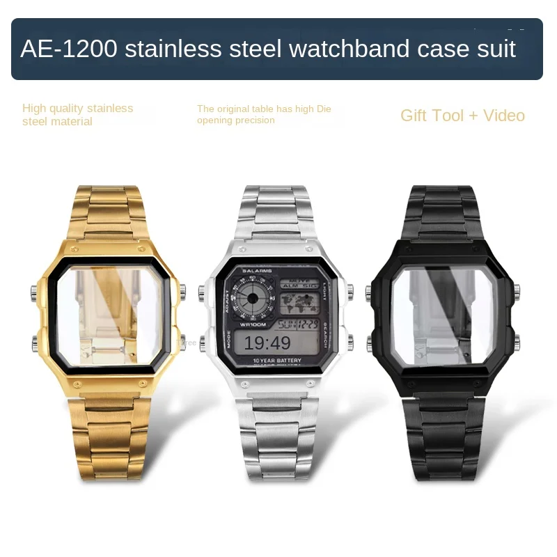 For Casio AE-1200 Watch Stainless steel case mod kit Modified metal 3299 bezel glass strap ring kit AE1200 Watchband accessories