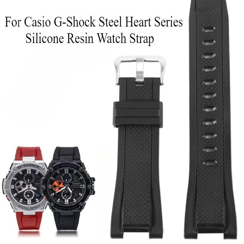 High Performance for Casio Watch Strap G-Shock Steel Heart Series GST-W300/400G/B100/S310 Silicone Anti Slip Texture Watchband