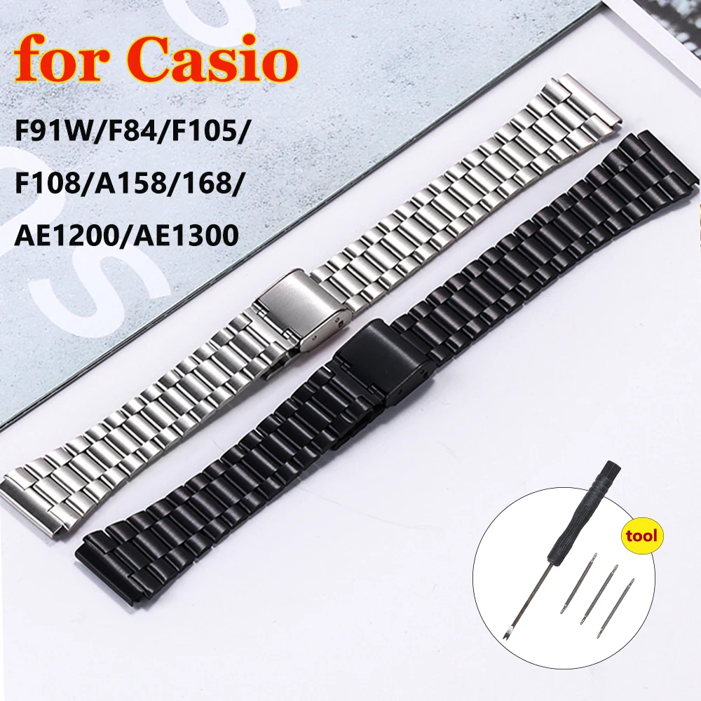 For Casio F91W Watch Steel for F84 F105 F108 A158 A-168 AE-1300 AE-1200 Casio Straps Ultra-thin Metal Bracelet 18mm 20mm