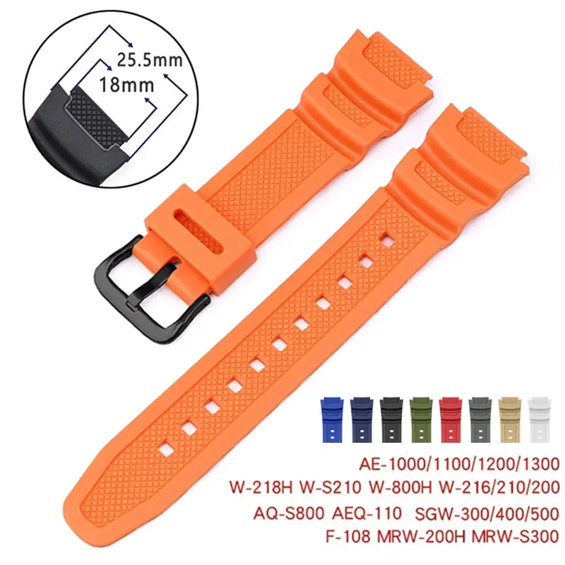 18mm Strap for Casio G-Shock AE-1200 AQ-S810W SGW-400H MRW-200H W-735H W-216H F-108 AEQ-110W Silicone Rubber Watch Band Bracelet